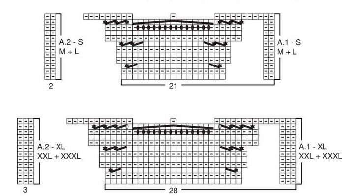 Для вязания по кругу можно использовать технику MAGIC LOOP – в этом случае понадобятся круговые спицы на леске 80 см всех указанных размеров.