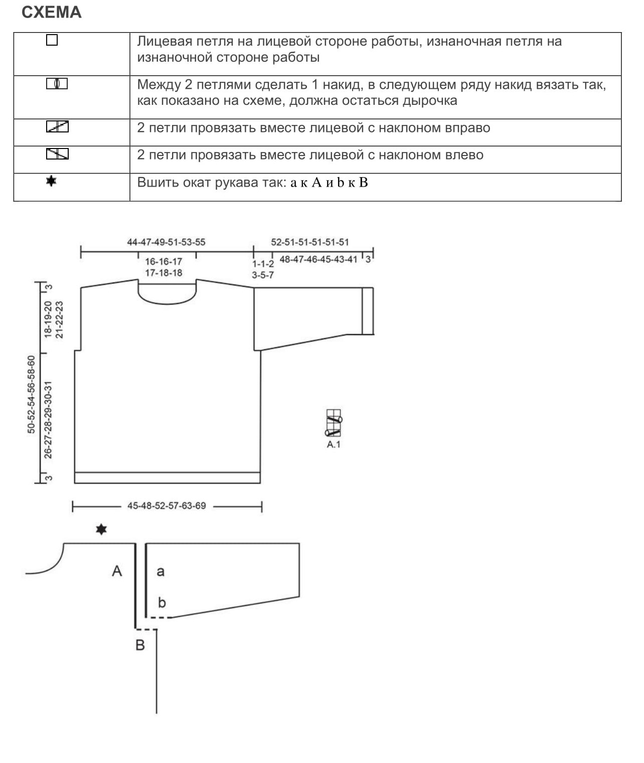 Длина джемпера – ок. 50-52-54-56-58-60 см от плеча вниз.