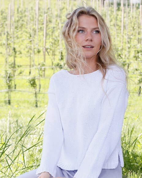 ОПИСАНИЕ ВЯЗАНИЯ: ДЖЕМПЕР, краткое описание работы: Перед и спинку сначала вязать поворотными рядами по отдельности, пока не будут готовы разрезы. Затем объединить детали и вязать тело по кругу на круговых спицах до пройм. Затем снова вязать перед и спинку по отдельности поворотными рядами. Рукава вязать по кругу на чулочных / коротких круговых спицах до оката, остаток рукава вязать поворотными рядами. Закончить обработкой шнуром i-cord.